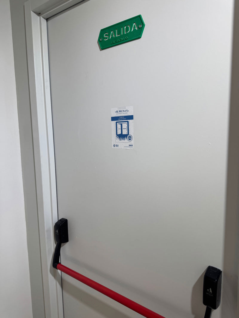 Cerradura de seguridad · Barra antipánico · Cierra puerta hidráulico.